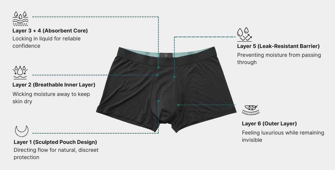 → The look & feel of regular underwear – zero bulk, zero rustle, zero telltale signs