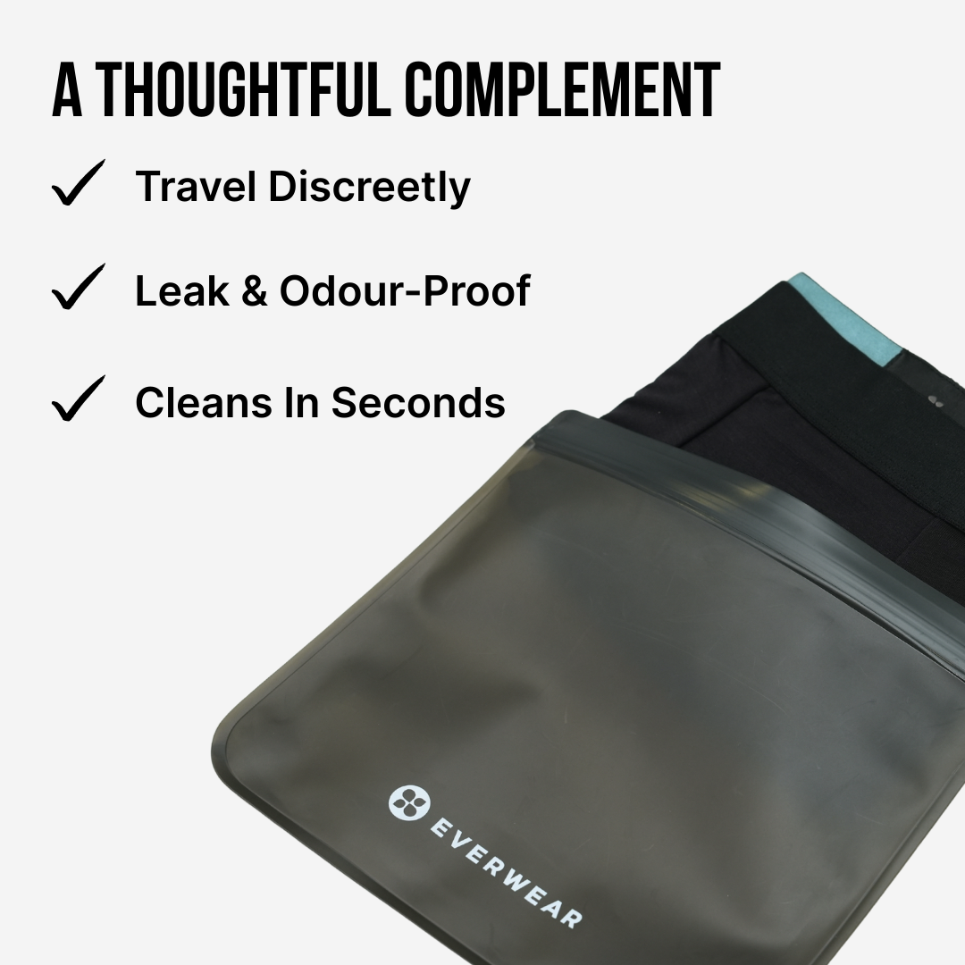 - Pakaging: Each pair of underwear includes a tight seal, leak-proof bag to carry Everwear after use