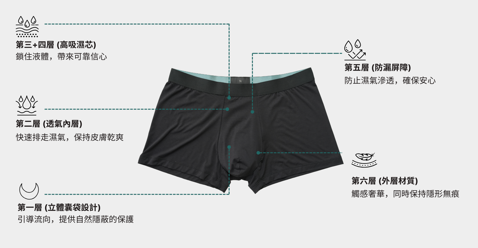 「這款內褲簡直顛覆了我的穿搭。我一整天都保持乾爽舒適,活動時也不會移位,而且看起來就像普通的內褲一樣。我終於可以無憂無慮地出門了。」——Sebastian